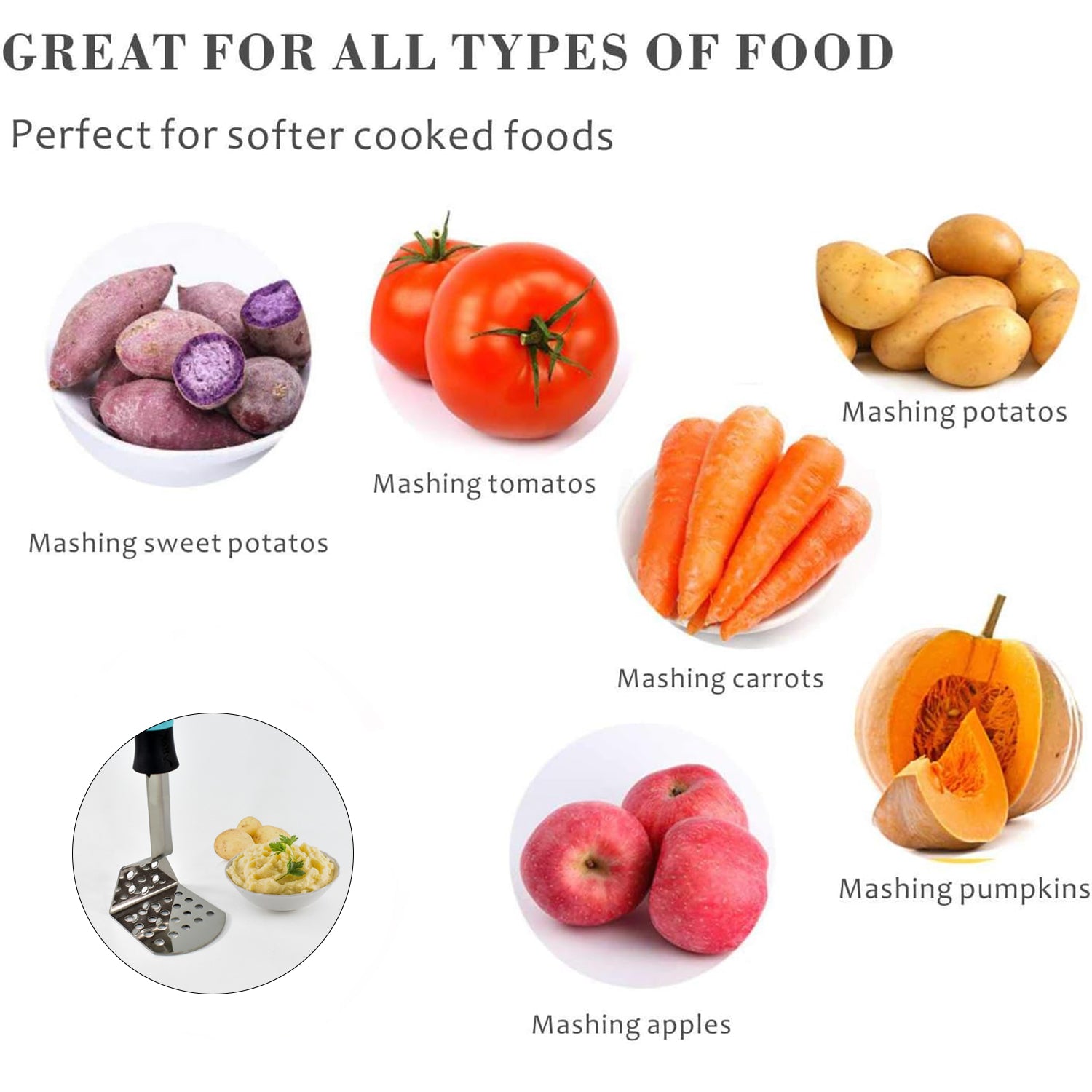 Smoothly mashes ingredients without creating lumps -