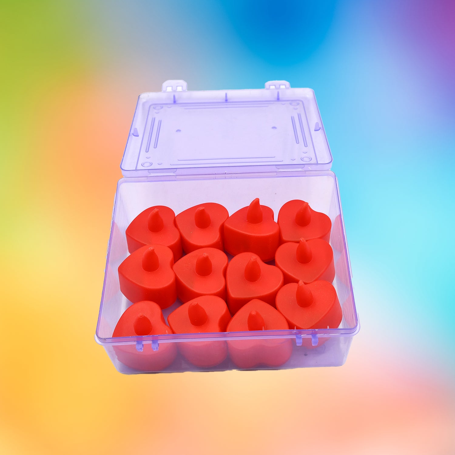 6631AÂ Flameless Candles LED Heart Shape Tea Light Candles Multi Color Electrical Diya Candles Battery Operated Fake Candles for Gift/Home Decoration Diwali Navratri Lighting (Pack of 12)